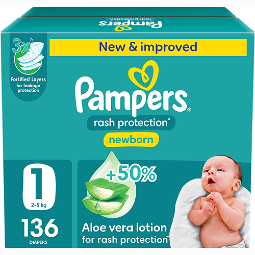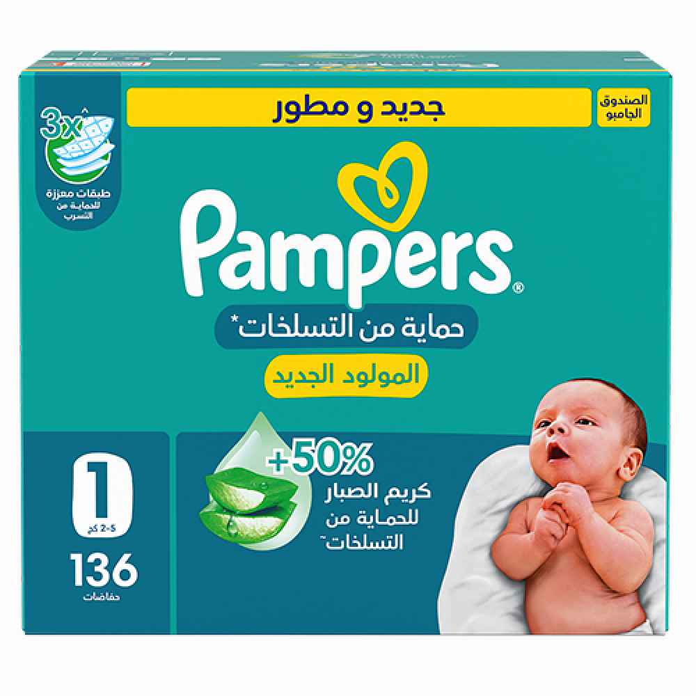 بامبرز حفاضات حماية من التسلخات مقاس 1 صندوق 136 حفاضة