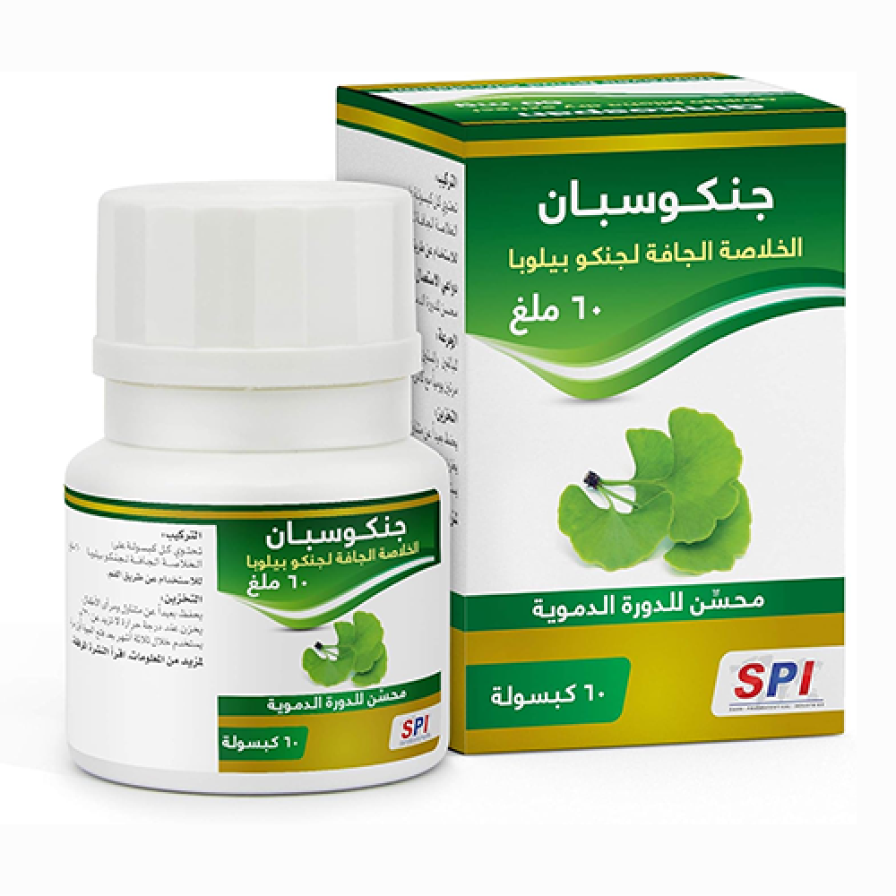 جينكوسبان 60 ملجم جينكو بيلوبا محسن للدورة الدموية 60 كبسولة