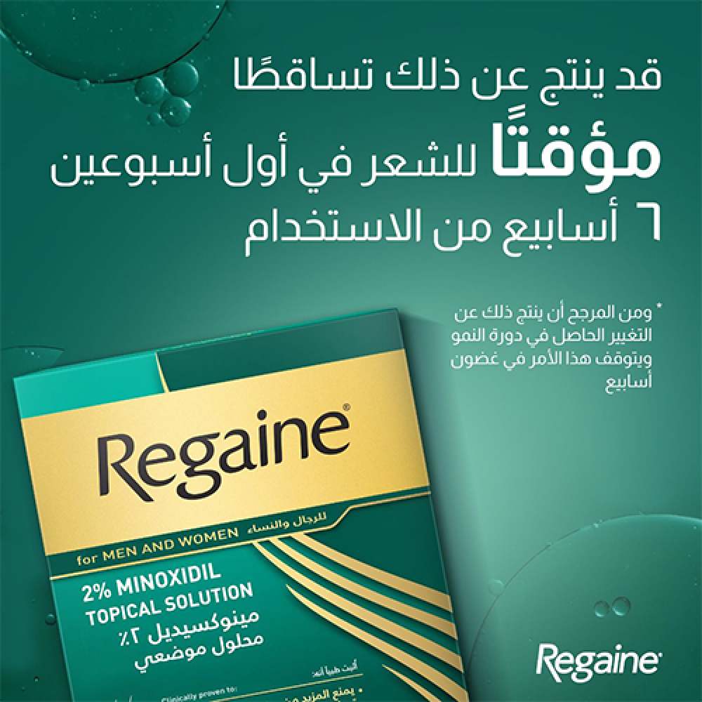 يُعد تساقط الشعر الوراثي من أكثر المشكلات شيوعًا، حيث يُصاب به ما يقارب 40% من الرجال بحلول سن 35، ويصل إلى 65% عند بلوغهم الستين. محلول ريجين® 2% تم تطويره خصيصًا لمواجهة هذا النوع من التساقط، ويظهر فعاليته بشكل أوضح عند استخدامه في المراحل المبكرة من فقدان الشعر.