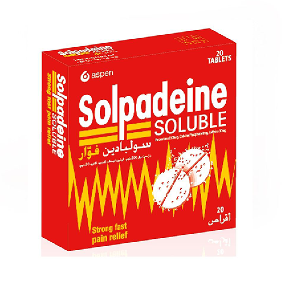 مسكن سولبادين فوار قوي وسريع المفعول يُستخدم لتخفيف الآلام المتوسطة إلى الشديدة، مع خواص خافضة للحرارة. يجمع هذا المنتج بين ثلاث مكونات فعّالة: الباراسيتامول، الكافيين، والكودين، مما يضمن تأثيرًا متعدد الجوانب لعلاج الألم والحمى بكفاءة. يتميز بتركيبة فريدة مصممة لتذوب في الماء، مما يضمن امتصاصًا سريعًا وتوفير راحة فورية.