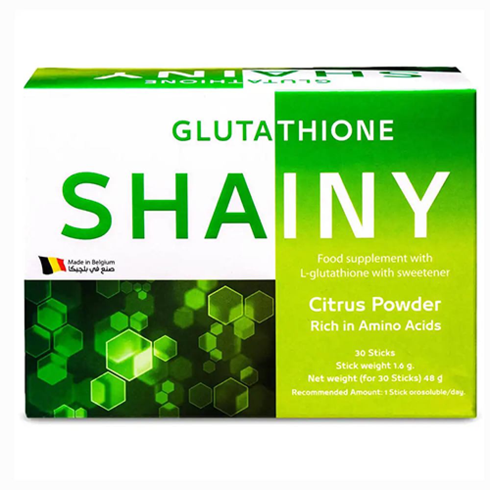 - شايني منتج مبتكر يحتوي على الجلوتاثيون النقي (مضاد الأكسدة الرئيسي) في شكل مسحوق بنكهة الحمضيات المميزة، من إنتاج شركة سيتريا اليابانية