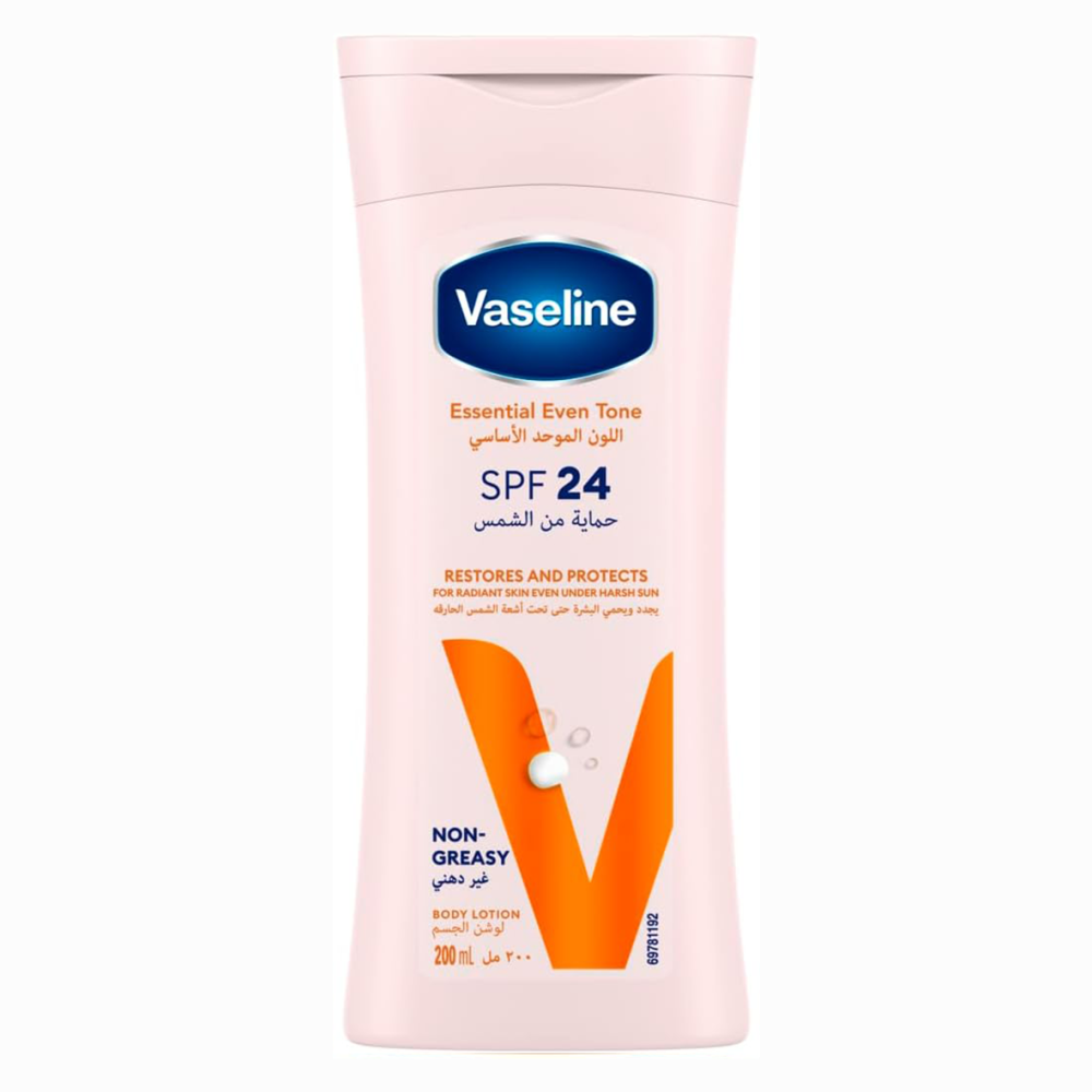 بشرة موحدة، ناعمة ومحصنة من أضرار الشمس هذا ما تقدمه لك تركيبة لوشن فازلين الوردي المصممة خصيصًا لمن تبحث عن عناية يومية ذكية تجمع بين الترطيب، التفتيح والحماية. لوشن فازلين موحد اللون ليس مجرد لوشن عادي بل خطوة عملية نحو بشرة أكثر إشراقًا وصحة بفضل فيتامين B3 وعامل الحماية SPF 24.