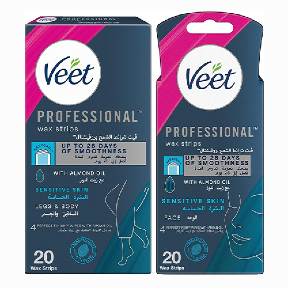 فيت شرائح شمع لازالة شعر (الساقين والجسم + الوجه) للبشرة الحساسة 40 قطعة بخصم 50%