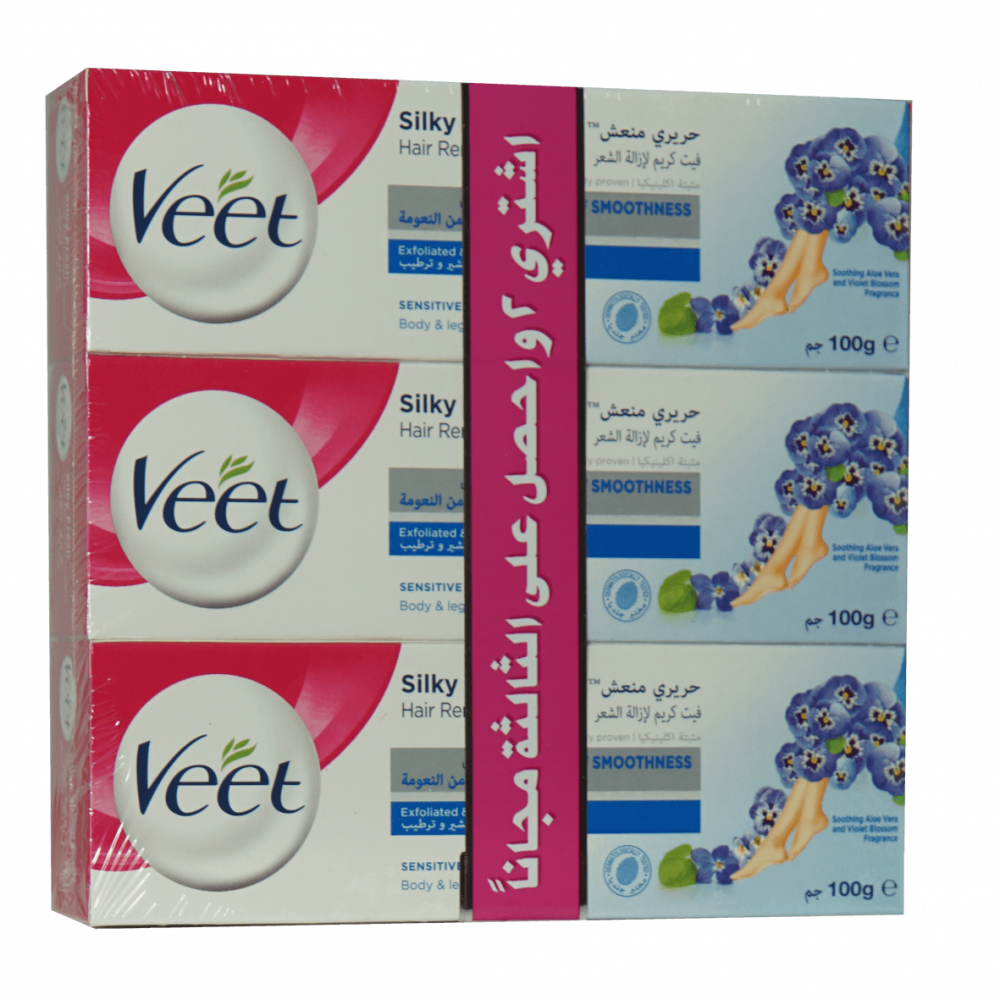 كريم فيت لازالة الشعر للبشرة الحساسة - 2+1 مجاناً - 100 جم بشرة ناعمة حريرية، نتائج تدوم أطول، ورائحة منعشة