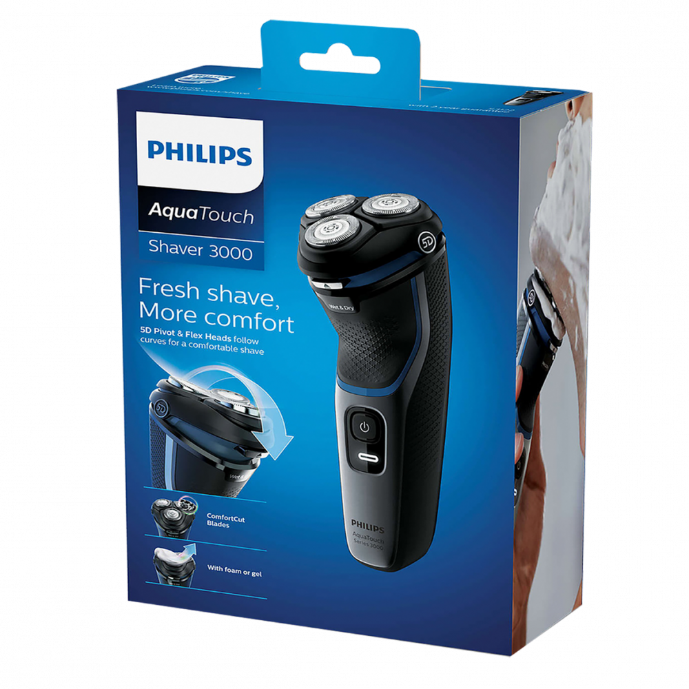 - تقدّم لك آلة الحلاقة AquaTouch 3000 من Philips حلاقة ملائمة ومريحة سواء أكانت حلاقة رطبة أم جافة، بفضل رؤوس Pivot & Flex الخماسية الأبعاد، ونظام الشفرة ComfortCut وإمكانية الحلاقة لمدة 60 دقيقة