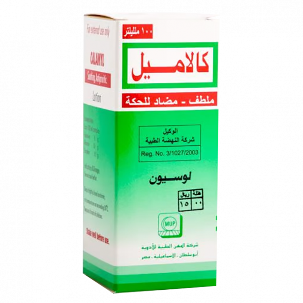 دواء كالاميل لوسيون 100 مللي ، هو مستحضر يحتوي على أوكسيد الزنك الأساسي الملون مع أوكسيد الحديد، ويتميز بفعالية عالية على الجلد. يستخدم عادة لتخفيف الحكة وتهدئة تهيج الجلد الطفيف، حيث يعمل عن طريق تأثيره المضاد للتهيج. عند وضعه على الجلد، يتبخر الكالامين مما ينتج عنه تأثير تبريد يساعد على تخفيف الحكة، كما يعمل على تهدئة حروق الشمس.