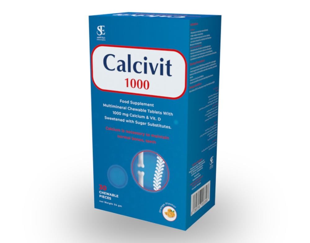 كالسي فيت 1000 أقراص مضغ مكمل غذائي غني بالكالسيوم وفيتامين د، مدعّم بعناصر غذائية إضافية مثل المغنيسيوم والزنك والمنجنيز والسيلينيوم والبورون، حبوب كالسيفيت تعمل علي تحسين صحة العظام والأسنان، تعويض نقص الكالسيوم، والوقاية من هشاشة العظام بفضل تركيبته المتوازنة.