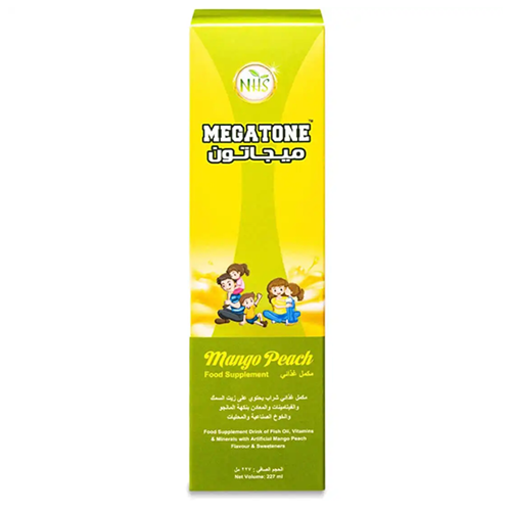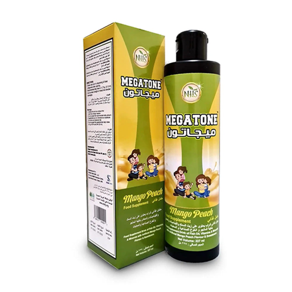 شراب ميجاتون فيتامين مكمل غذائي يحتوي على تركيبة فريدة من أحماض أوميجا 3 بحرية المصدر بتركيز 1000 ملجم، بالإضافة إلى فيتامين د والزنك والماغنيسيوم. يتميز بطعم الخوخ، ويُعد من أهم المكملات الغذائية المناسبة لجميع أفراد الأسرة.