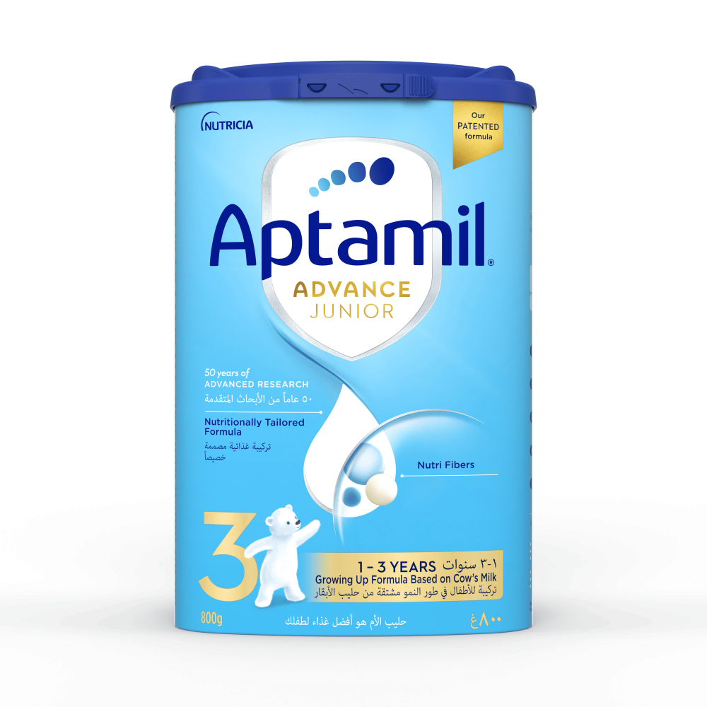 أپتاميل جونيور 3 حليب مغذي للأطفال في مرحلة النمو، طور عبر أكثر من 40 سنة من الأبحاث العلمية في هولندا. تم تصميمه خصيصاً لتلبية الاحتياجات